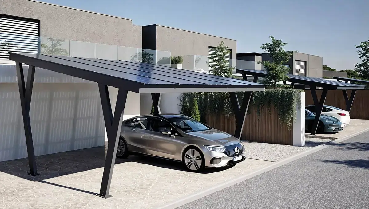 Le Carport Photovoltaïque est parfait pour ceux qui recherchent une solution durable, alliant esthétique, fonctionnalité et engagement environnemental