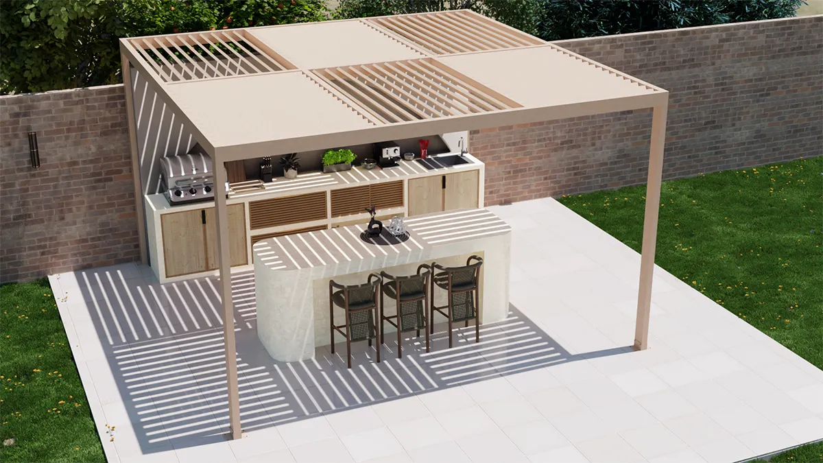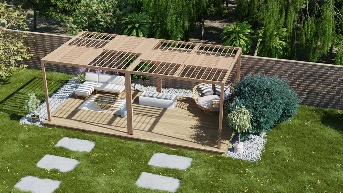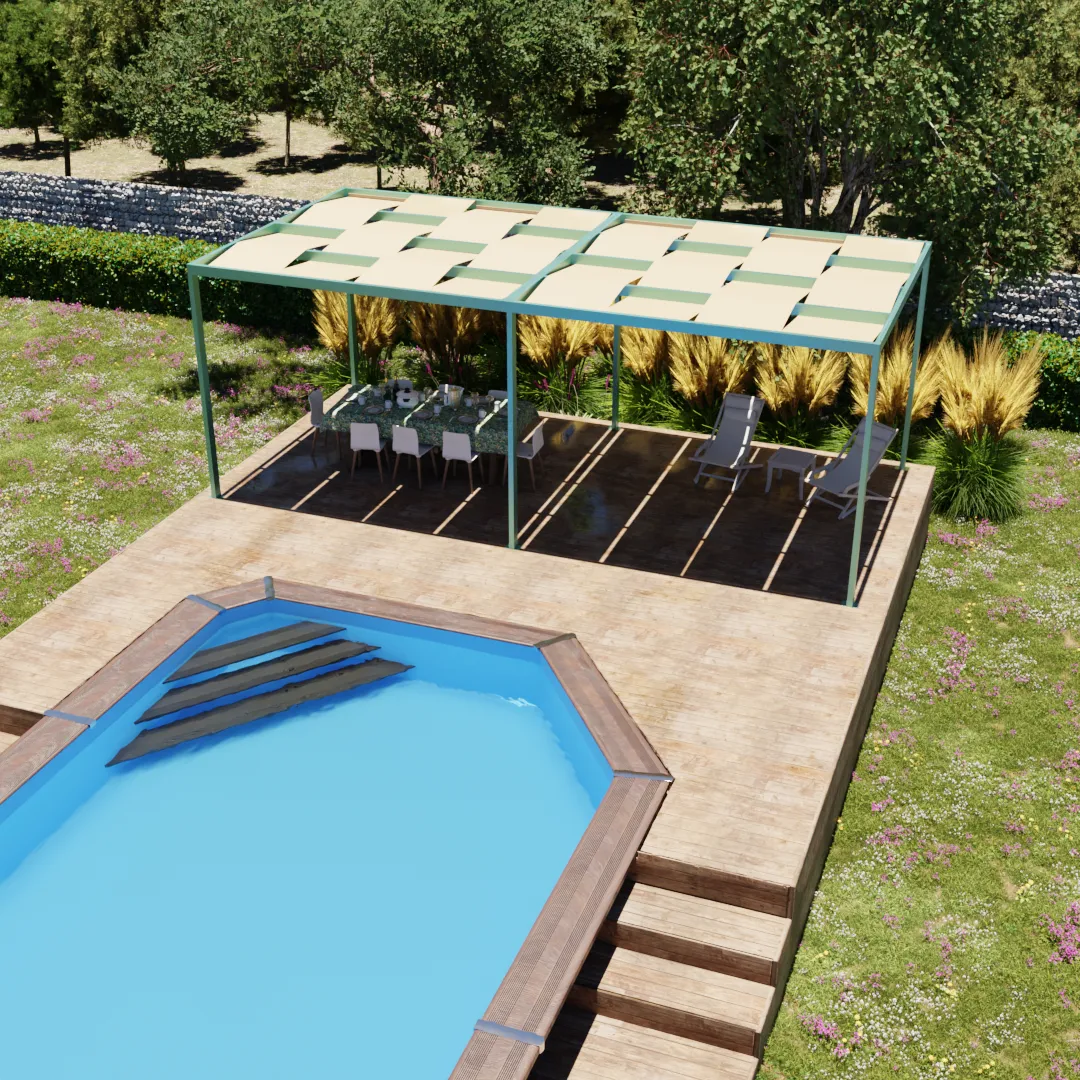 Un rapport qualité/prix incroyableLa Pergola Déco se distingue par sa structure élégante en aluminium, à la fois moderne et résistante. Elle se caractérise par un design minimalistes et des options de personnalisation. Sublimée par ses quatre toits différents, qui créent un jeu visuel unique tout en offrant des usages variés selon l’ensoleillement ou la météo. Cette combinaison apporte du caractère à l’espace extérieur, transformant la pergola en véritable élément architectural et décoratif.